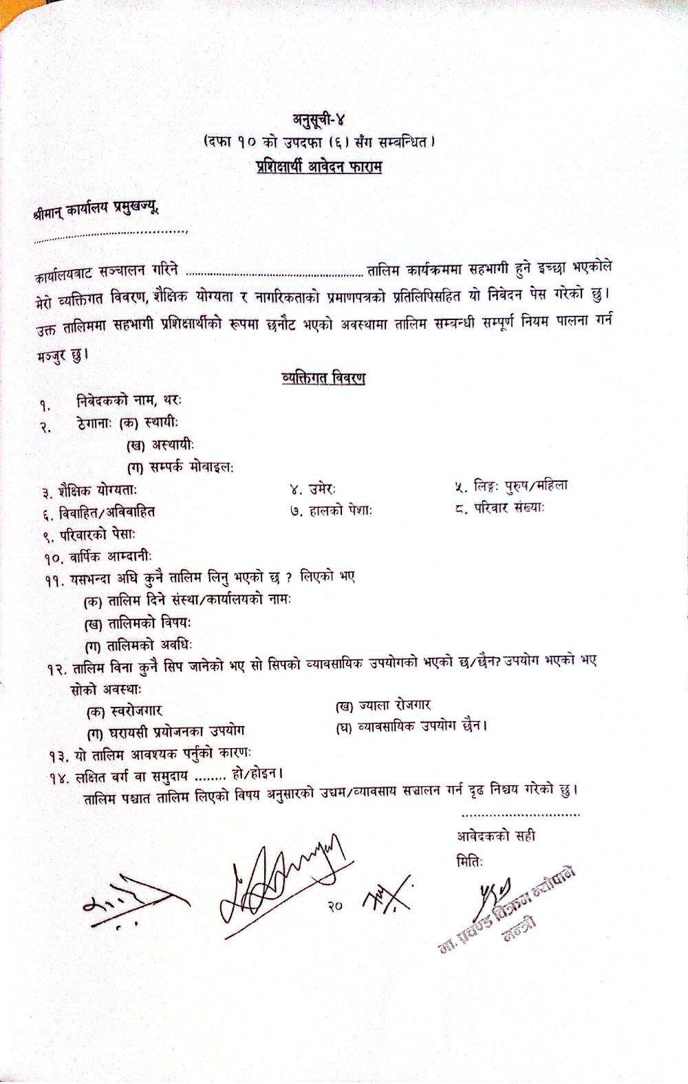 फागुन १२, २०८२ प्रारम्भिक सुन चाँदी कालिगढ तालिम सम्बन्धी आवेदन फारम (अनुसूची-४)